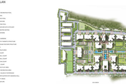This 40-acre project site is located at the intersection of two major roads and is surrounded by 150 acres of reserved parkland. The project consists of 23 residential towers containing 3,000 units and a 9,000 sq.m. retail and commercial office complex adjacent to the main road. The landscape design complements the Mediterranean architectural style while integrating subtle design influences reflective of the New Delhi planning and design language.