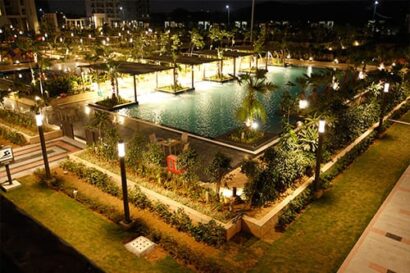 GSA developed a landscape design for a high-end residential project, within a developing neighbourhood in Gurgaon, which provided various outdoor amenity spaces. Such amenities included large spread lawn areas, adults pool, children’s pool, private seating areas with shade structures, pool decks for parties, kids play area, water features, mounds, and sports facilities.