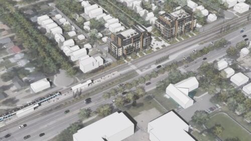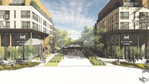 Green Space Alliance (GSA Consulting Inc.) was retained by Pinto Properties Inc. to provide Planning and Urban Design services on their rezoning application in the McKernan, a mature neighbourhood in Edmonton. The project, called Metro 78, comprises two seven-storey buildings at the doorsteps of the McKernan-Belgravia LRT station. Metro 78 is an example of quality development in Edmonton that breaks the cycle of car-oriented design and culture. It will be a car-free development in McKernan. The proposed concept started from a simple idea – make housing more equitable through transit-oriented development. The owner of Pinto Properties took cues from his observations of how people in Europe live more locally and do not need a car. Metro 78 will be a beacon for the neighbourhood. People already access both the east and west residential areas from the LRT at this location. This pedestrian gateway is a foundation feature in the McKernan-Belgravia Area Redevelopment Plan. The goal is to reconnect the east and west side community bisected by 114 Street.