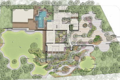 GSA was retained by the client to provide complete landscape architectural services for this unique residence. The design was developed by carefully considering locations of all existing trees, client’s requirements and the unique architectural character of the built environment.
